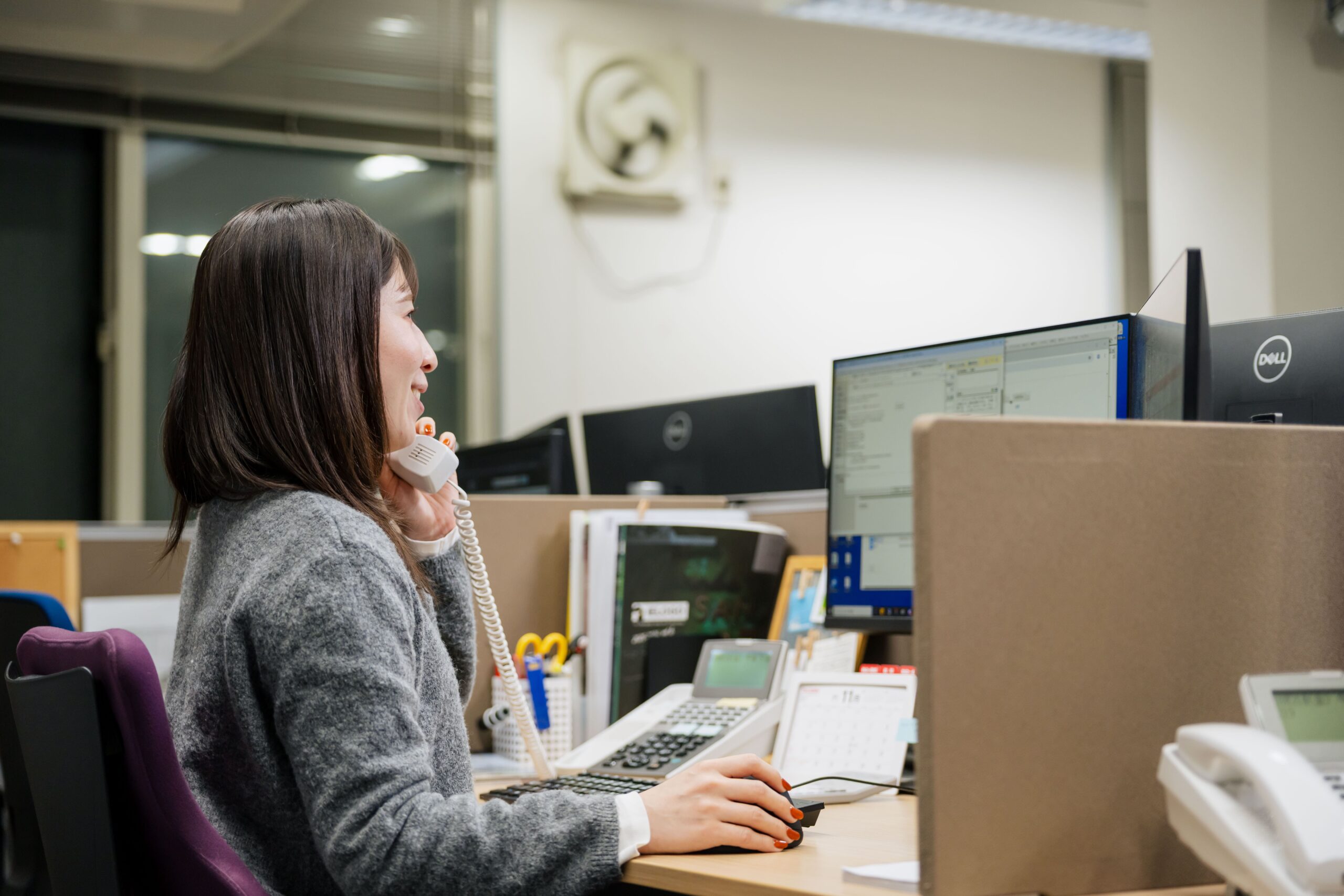 受発注や請求処理、電話対応など、営業や製造のメンバーを支える仕事が中心です。 直接お客様とやりとりすることは少ないけれど、現場の人たちから「助かった!」「ありがとう!」と言われる機会が多く、やりがいを実感できます。